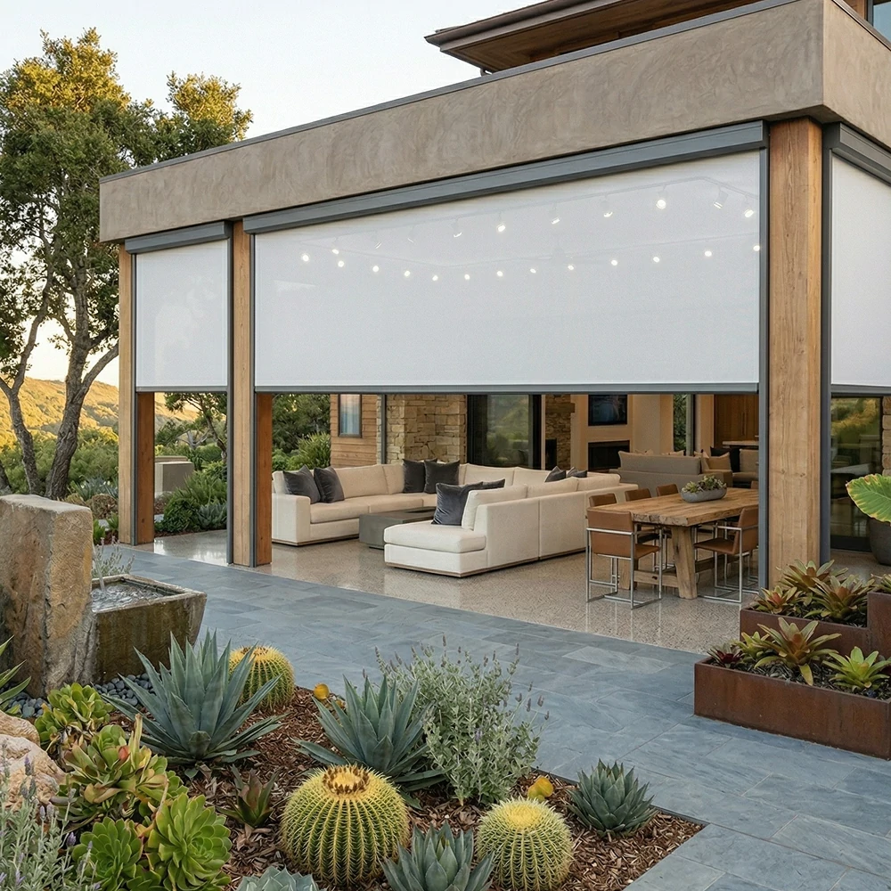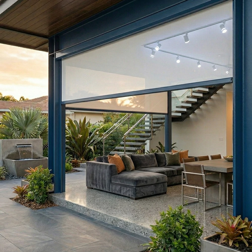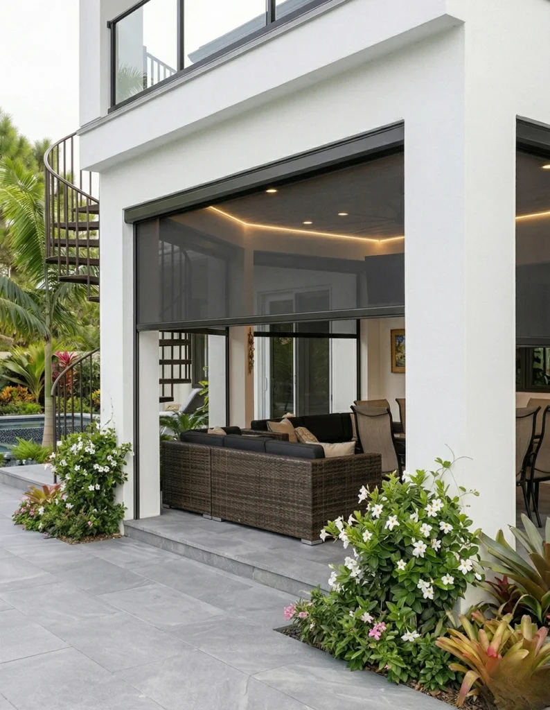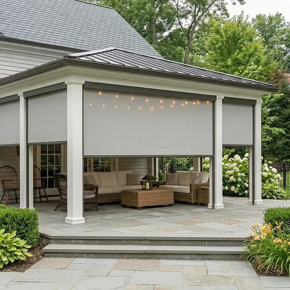 Control sun, wind, and privacy with motorized patio blinds. A simple tap lets you create a comfortable, protected outdoor space without blocking your view.