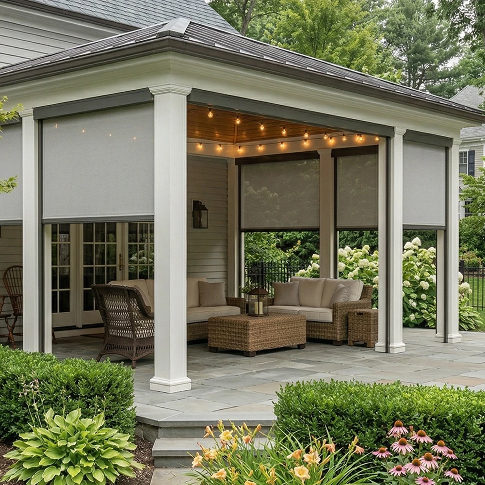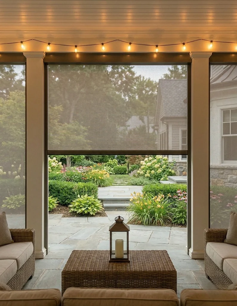 Control sun, wind, and privacy with motorized patio blinds. A simple tap lets you create a comfortable, protected outdoor space without blocking your view.